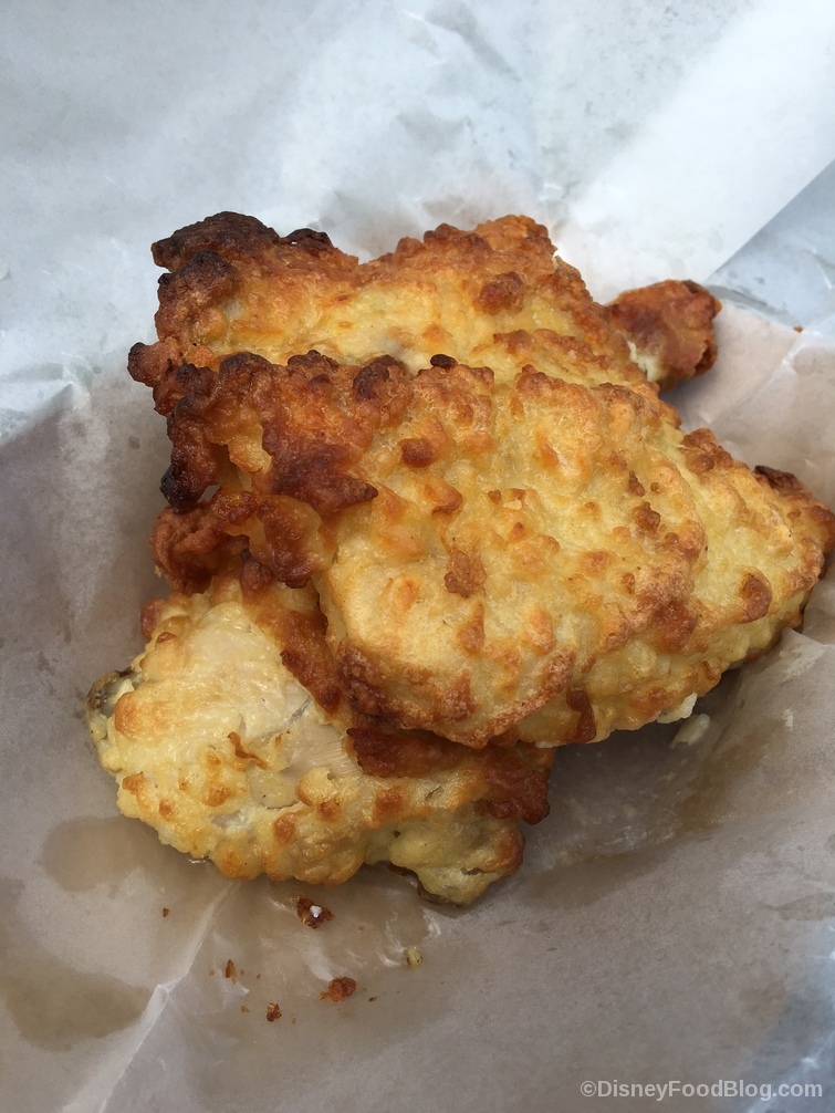 The good news is that there is a nice, mildly sweet flavor from the honey in the breading that’s pretty delicious, so the taste is on point. If it was fried a bit longer, we could have a real winner on our hands.