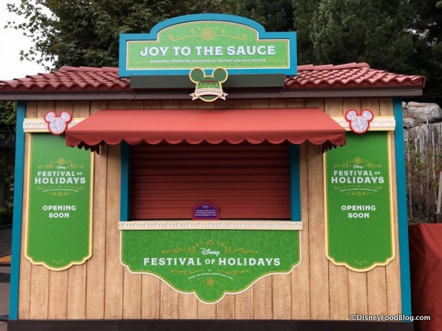 The twelve Disneyland Festival of Holidays Food Booths serving eats at Disney’s Festival of Holidays at Disney California Adventure Park are already in place, ready for the Festival to start on Friday, November 10th!