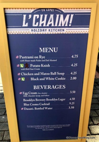 2018 Epcot Festival of the Holidays L’Chaim! Booth Menu