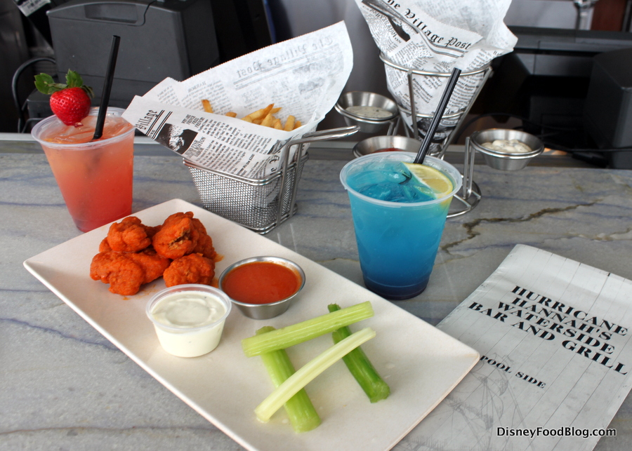 You know how sometimes we tell you about a slightly out-of-the-way place and say it’s totally worth the effort to get there? This will not be one of those times. Hurricane Hanna’s Waterside Bar and Grille is located adjacent to (the stupendously awesome) Stormalong Bay at Disney’s Yacht and Beach Club Resorts and offers alcoholic and non-alcoholic drinks and a small menu of snacks for hungry swimmers (and any hungry passersby).
