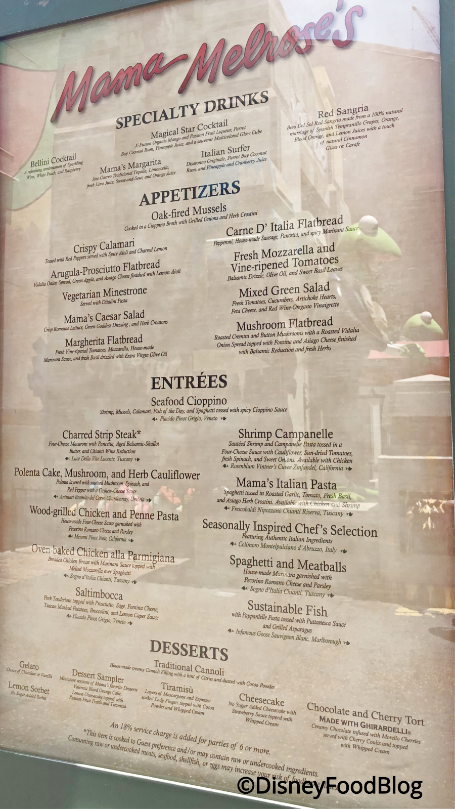 The menu at Mama Melrose’s has replaced the Rosemary Chicken Flatbread with an Arugula Prosciutto Flatbread.