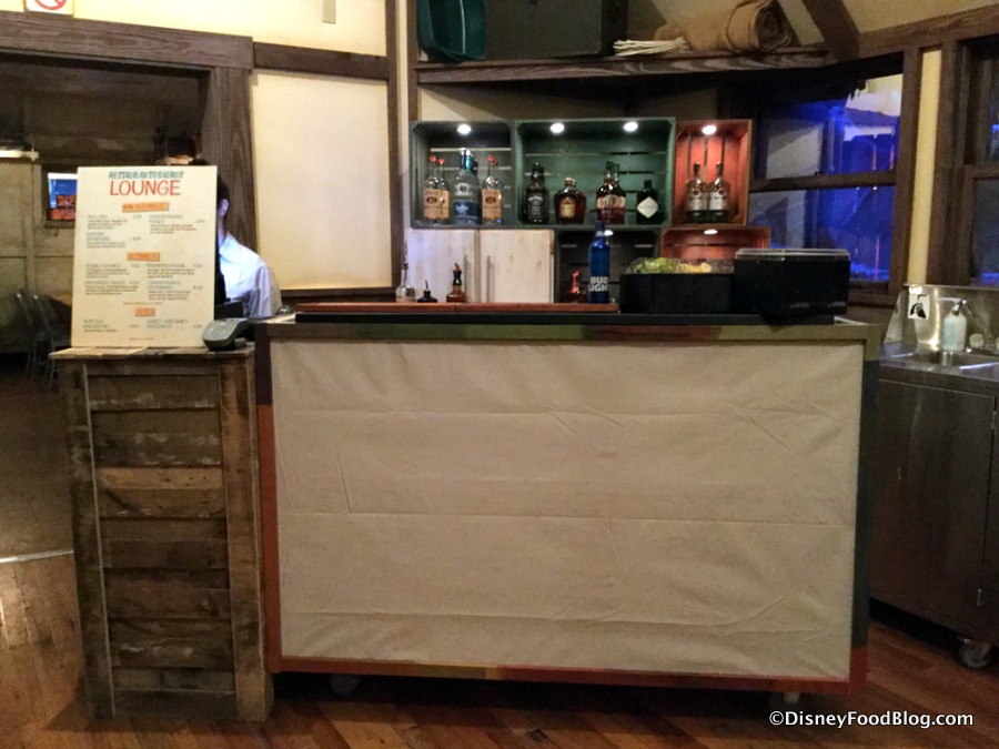 The Lounge is open daily from 5:00 pm until park close during its three month trial period. When you see this sign, just enter through the door in the building behind it. (It’s on the left hand side of the restaurant.)
