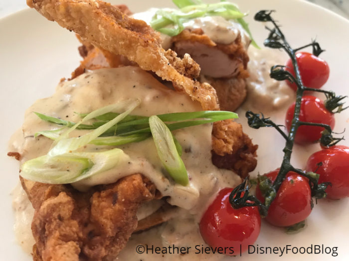 Country Biscuits and Gravy is a bit of a misnomer for the next dish, the star of which is actually a crispy fried chicken breast! Yeah, you can hit us up with bonus fried chicken anytime. The bacon gravy (!!) is delicious and smoky, and there’s plenty of it on the plate.