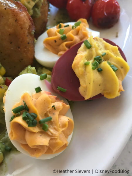 The deviled eggs are fantastic and definitely go beyond the standard variety. So much color and flavor here!