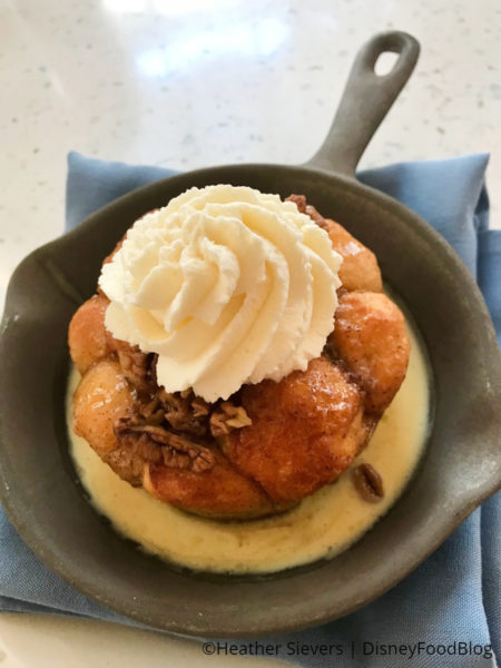 And Heather got it all! We’ll go through the menu item by item, starting at the top with the can’t-miss Monkey Bread! It’s called the Southern Sweet Skillet, and it is awesome!