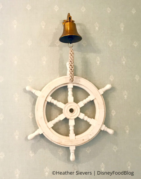 There’s a bit of a nautical vibe, too, including this ferry boat wheel and copper bell.