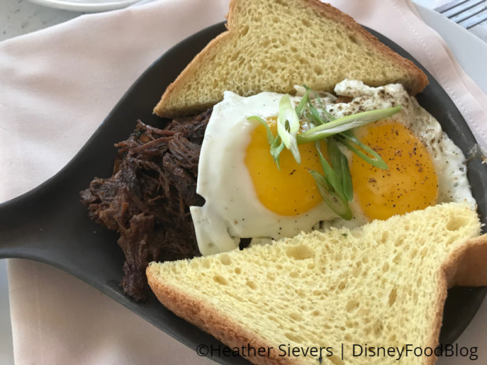 Next up is the Short Rib Skillet. This was one of Heather’s favorites, and it’s easy to see why. Two perfectly cooked eggs keep company with a huge pile of pulled, slow-cooked short ribs.