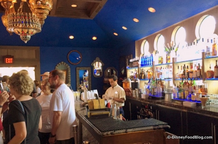 Spice Road Table also has a beautiful bar — a space with bright blue walls, gorgeous light fixtures, and thoughtful Moroccan details everywhere!