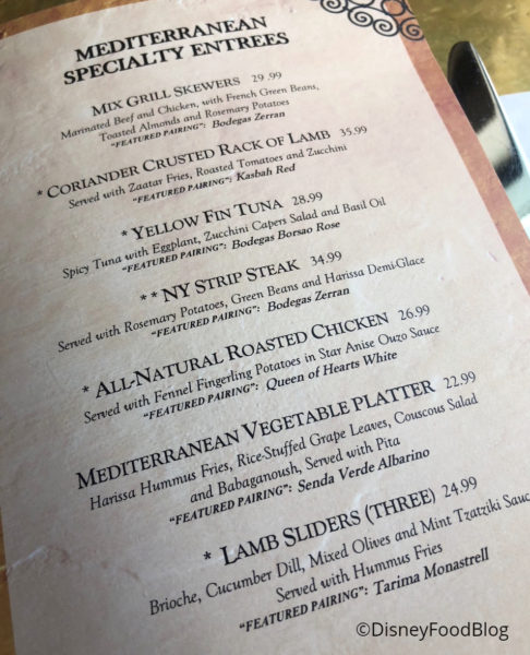 This is one of my favorites in Epcot! I love Mediterranean food and haven’t been disappointed so far. I hate to hear others haven’t enjoyed it. The service has never been outstanding, but it has been good. I wish it would gain in popularity somehow because I would be so disappointed if it goes away.