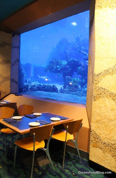 We ate lunch here in November. (Table service on the dining plan). The food was fantastic. Stuffed whole lobster lobster Mac and cheese and we both had the lobster bisque. We indeed to our seafood fix. It was all fantastic. We would have liked to be closer to the aquarium but we could see it from our booth. The service was great. No complaints here. We would go back!