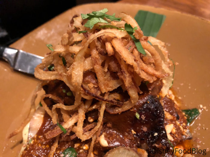 The play of textures is fantastic here. We loved the simple fried onions, which added a lot of visual interest as well as flavor.