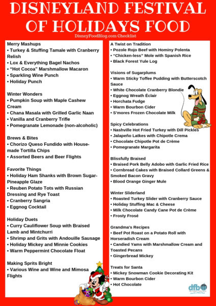 Holiday Snack Checklist for Festival of Holidays at Disney California Adventure