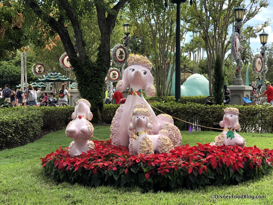 And just across the way near The Hollywood Brown Derby, even more vintage decorations help set the atmosphere.