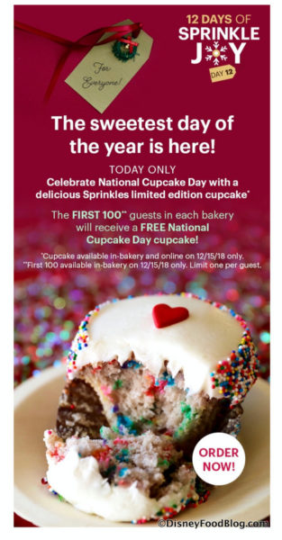 Happy National Cupcake Day! Yep, that’s TODAY (December 15th), and we couldn’t resist stopping by Sprinkles in Disney Springs to celebrate!