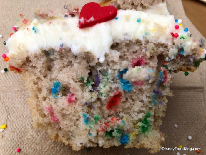 Sprinkles is marking the occasion with a VERY limited edition cupcake… as in TODAY ONLY! (But don’t worry — we grabbed another cupcake to show you in case you’re aren’t in Disney World to celebrate today!)