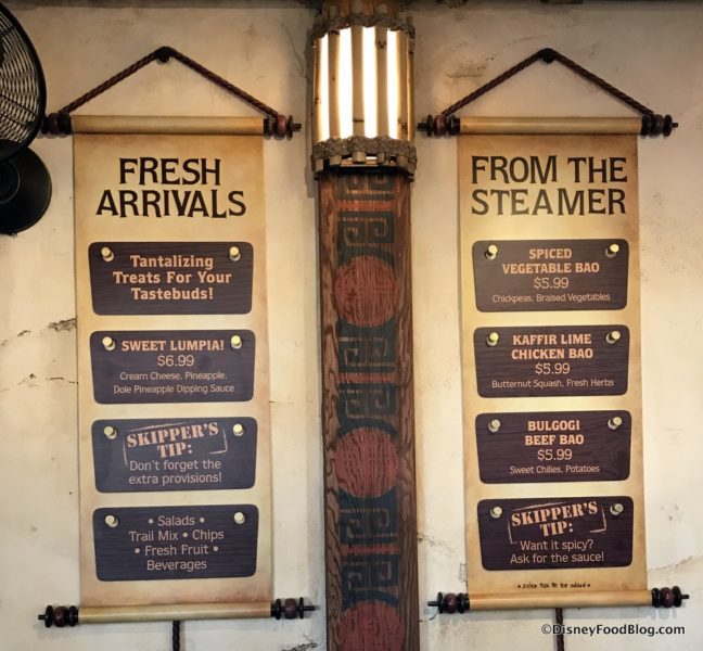 Nestled on the shores between two beloved attractions — Walt Disney’s Enchanted Tiki Room and the Jungle Cruise — this new Counter Service location takes inspiration from its tropical neighbors for its trader’s market setting, with food and drink offerings likewise highlighting exotic cuisine from around the globe.