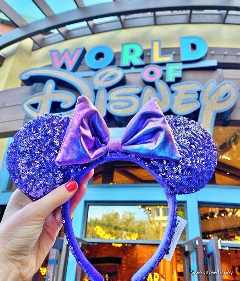 Many thanks to @weknowdisney on Instagram for this purple-y pic of the Potion Purple Ears outside of the World of Disney store in Disneyland’s Downtown Disney District!