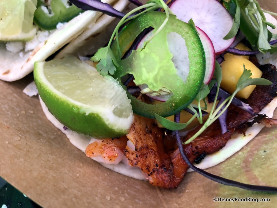 You’ll typically find Fantasy Fare Food Truck and Springs’ Street Tacos in Exposition Park on the West Side of Disney Springs (though they can move around, of course). And, by the way, you can still see the beautiful artwork on the Springs’ Street Tacos Truck from when it operated as Namaste Cafe 🙂 .