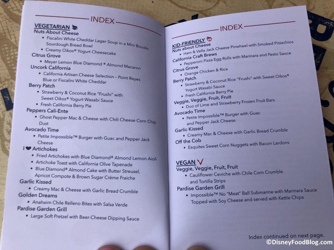 2019 Disney California Adventure Food and Wine Festival Booth and Menu Index