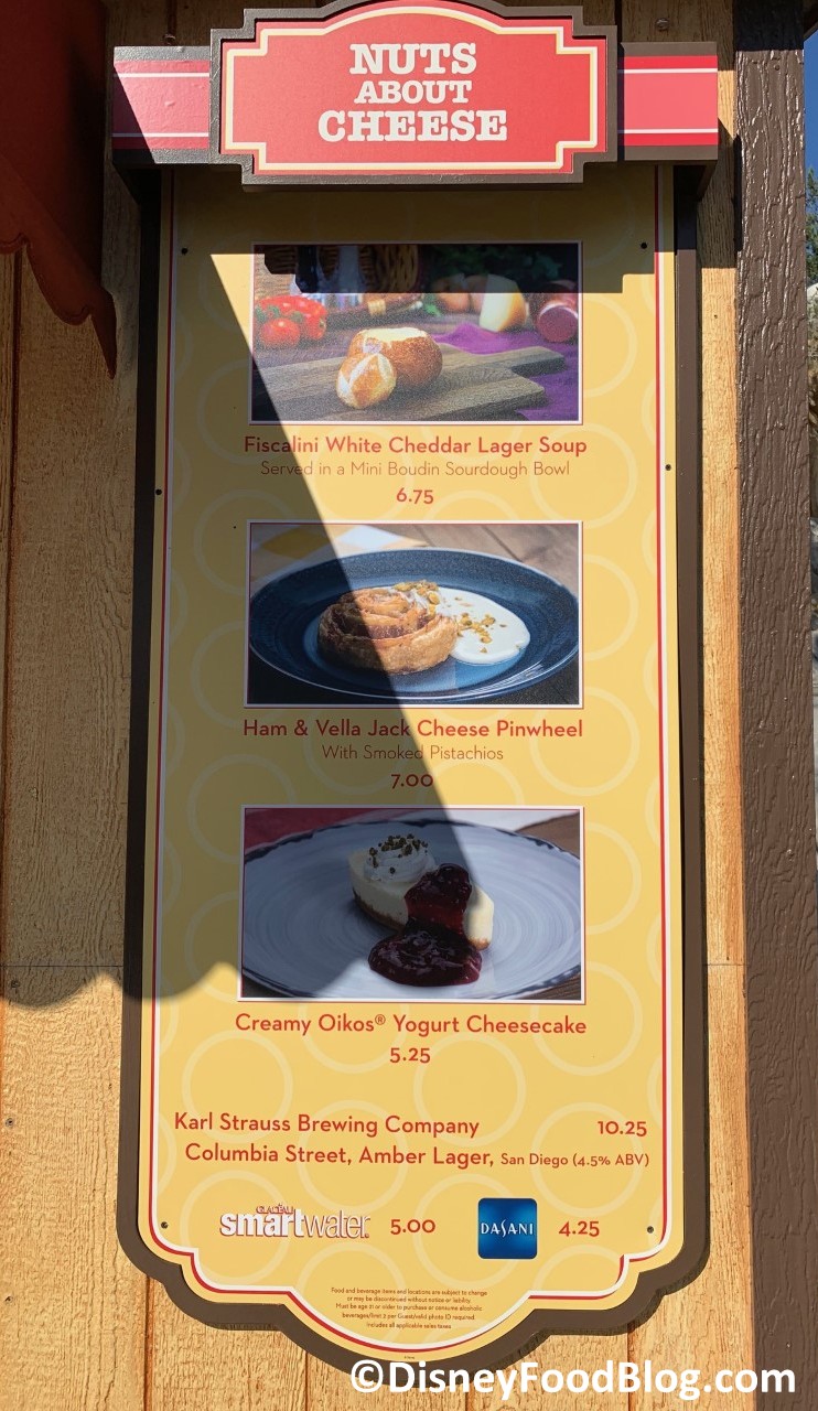 - Fiscalini White Cheddar Lager Soup served in a Mini Boudin Sourdough Bowl – $6.75