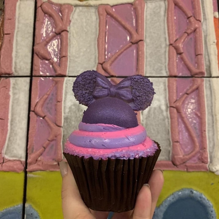 Disney’s Contemporary Resort, Contempo Café: A strawberry cupcake filled with purple sprinkles topped with lavender buttercream and purple Minnie ears