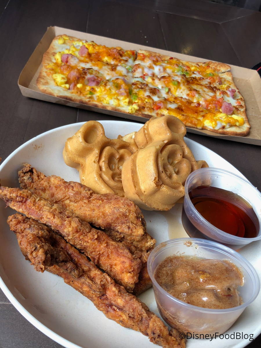 I went with two dissimilar items: Chicken and Waffles (because chicken and waffles) and Breakfast Flatbread. These aren’t necessarily new, but both provide two important elements for the most important meal of the day: protein for long-lasting, park-blasting fuel and carbohydrates for a burst of quick energy.