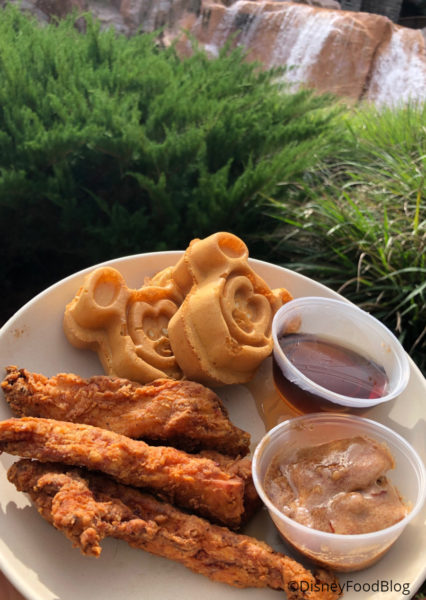 Chicken and Waffles is a common find in Disney World — from Chef Art Smith’s killer version of it over at Homecomin’ in Disney Springs to the sadly lacking version at Ale and Compass in Disney’s Yacht Club Resort. So I wasn’t sure what to expect from Roaring Fork