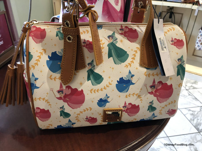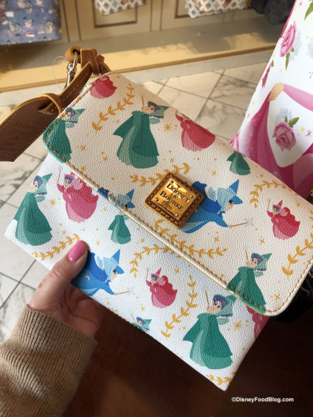 We found these in Uptown Jewelers on Main Street, but they are also available in Disney Springs’ Ever After Jewelry Co. & Accessories — and we spotted them on ShopDisney! You can select from the Sleeping Beauty Tote, Flora, Fauna, and Merryweather Crossbody, or the three fairies on a Satchel.