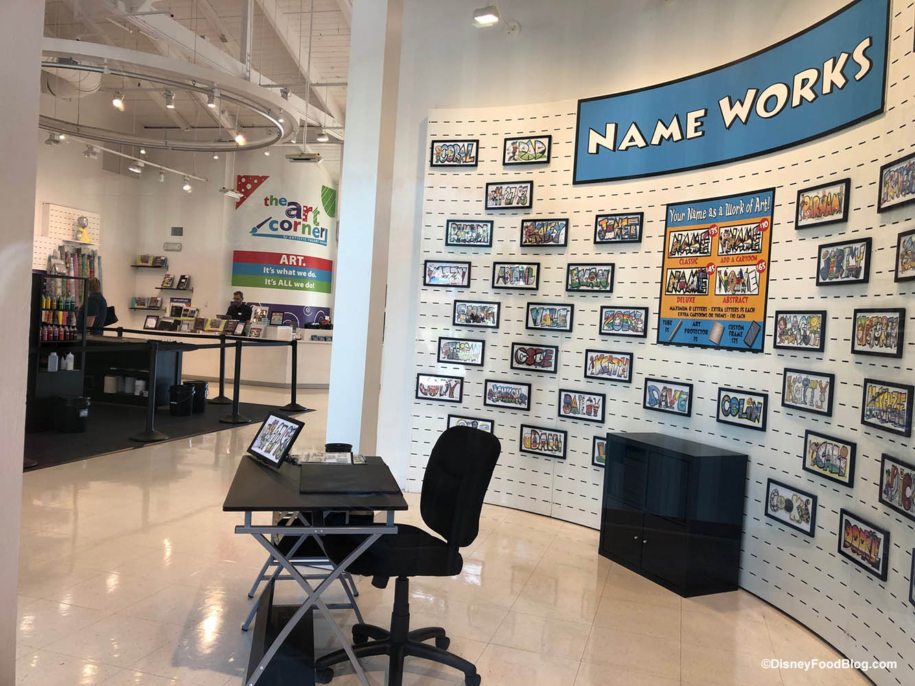 You’ll recognize the caricatures, name art, and artistic marbling from various locations around the parks and resorts as they, and the new pop-up location, are run by the Artistic Talent Group. Take a tour with us of this new location!