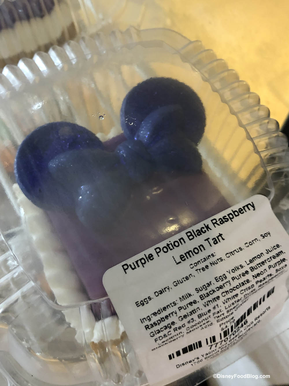 Not to be left out of the Purple Takeover of Disney, these two locations are offering a Purple Potion Black Raspberry Lemon Tart — and it is wearing the Purple Potion Minnie Ears!