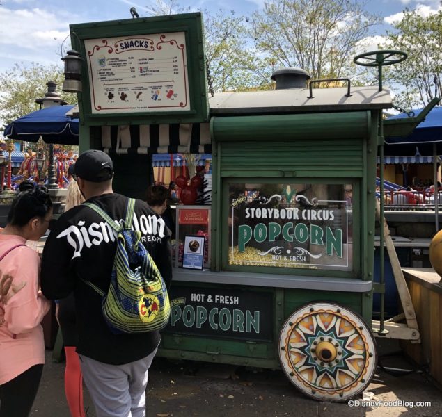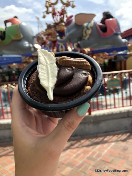 That’s where Dumbo’s Magic Feather Brownie can currently be found at the Storybook Circus Popcorn Cart right near the Dumbo the Flying Elephant attraction!