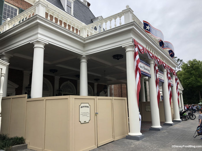 You will find a lot of construction as you near the France pavilion and the International Gateway. Some of the work in the International Gateway area is to add Epcot’s Skyliner Station to the park. We do not know, and no announcements have been made, about the construction after the International Gateway entrance seen below.
