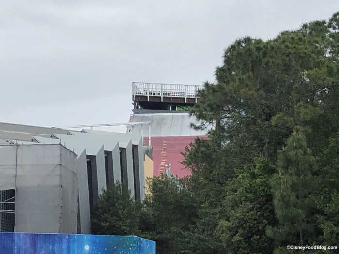 will open in 2021 in time for Disney World’s 50th Anniversary. You can see the ride building and its progress from various points all over the park — from the parking lot to the Japan pavilion in World Showcase.