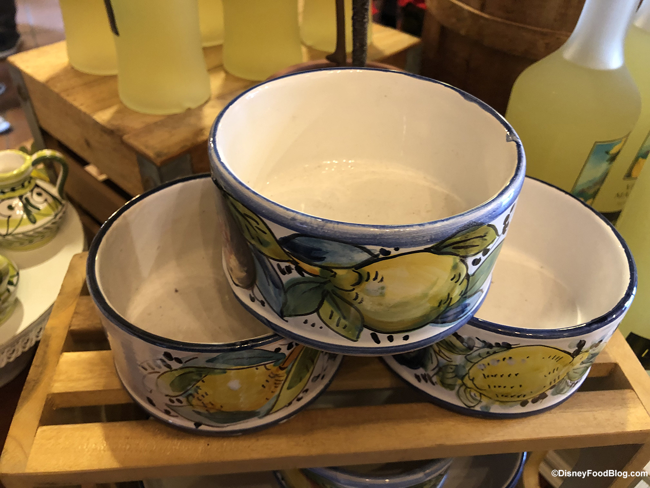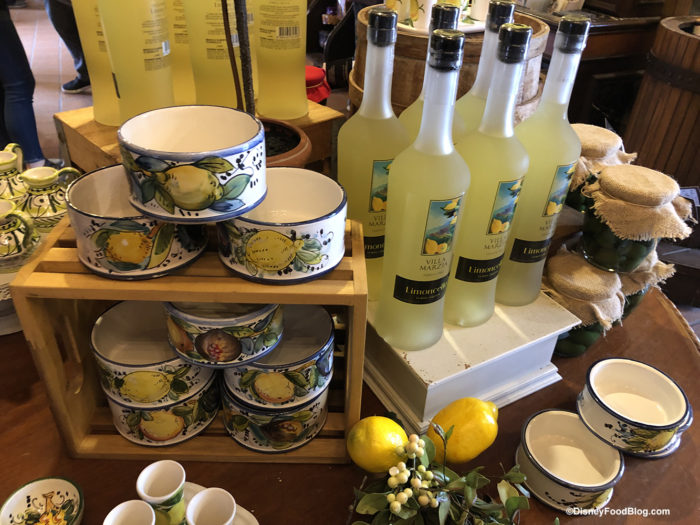 The shop in the Italy pavilion has a new feature display focused on all things lemons and limoncello. What a fun, bright collection for the spring and summer!