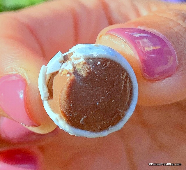 The eggs are solid chocolate with a sugary coating — nothing special but if this is a favorite Easter candy for you, they’re kind of a bonus atop the delicious cupcake!