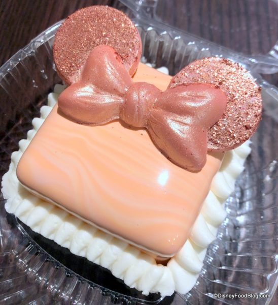 Briar Rose Gold is really similar to the original Disney rose gold, and while this tart reads a bit more pink that you’d expect in the glaze, the ears and bow do capture the color trend pretty well. As for the flavor: it’s good! Not a destination treat but a fun one to try if you’re already at one of the resorts!