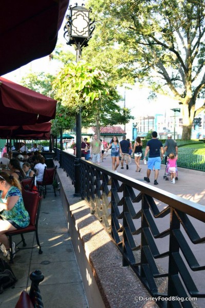 The Hollywood Brown Derby Lounge doesn’t have the black and white caricatures that the full restaurant is known for, but it does have an awesome view for people watching and enjoying the park atmosphere!