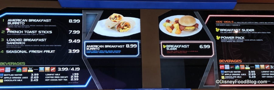 We stopped in for breakfast and sampled two distinct options: French Toast Sticks and the American Breakfast Burrito. Other options include a Loaded Breakfast Sandwich and Seasonal Fresh Fruit.
