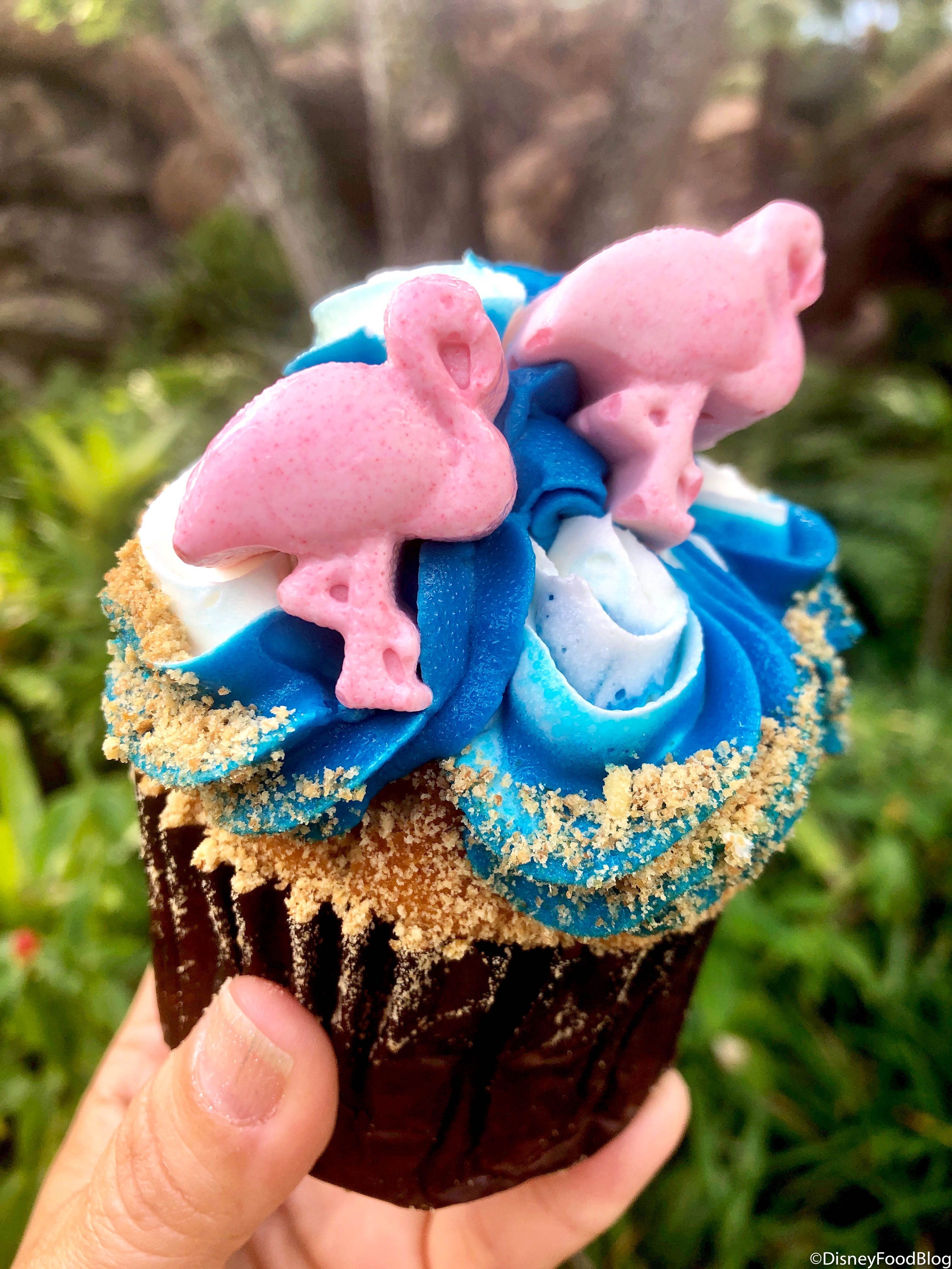 The Flamingo Cupcake is $5.99 or a snack credit and can be found at Creature Comforts in Animal Kingdom.