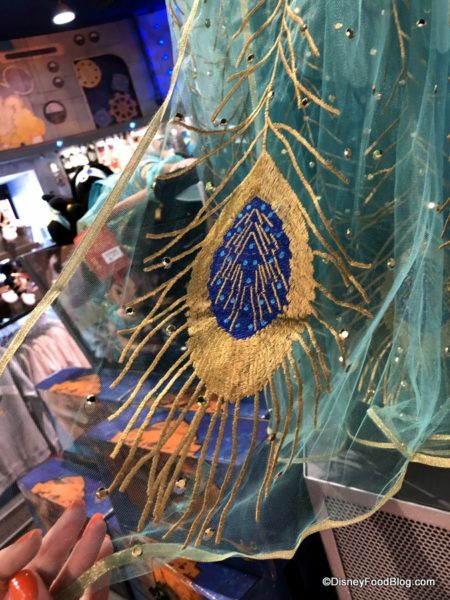 BUT Disney didn’t stop there. We also saw one of the most gorgeous and intricate Jasmine costumes EVER. The costume is beautifully stitched in gold and has stunning beading on the entire costume.