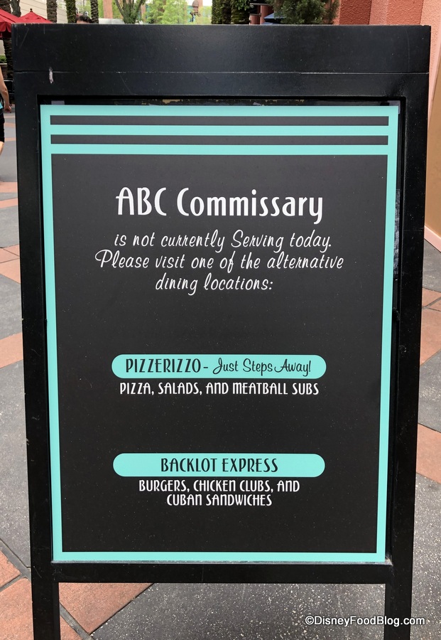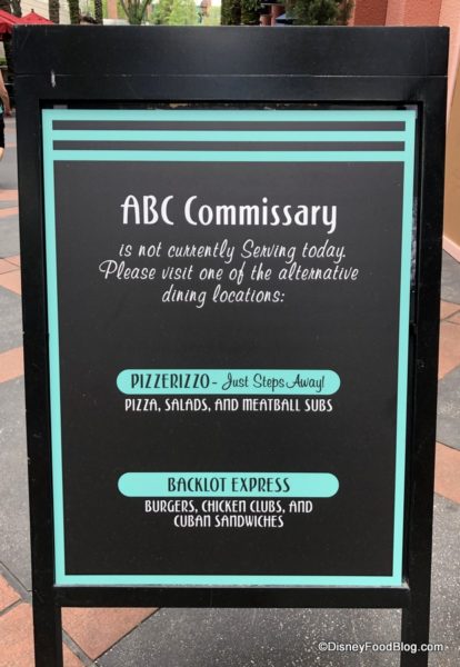 In case you haven’t heard, there is currently a switcheroo taking place with Counter Service locations in Disney’s Hollywood Studios. ABC Commissary is gearing up for a new style of dinner service starting June 2nd. So the spot is currently closed to make some preparations.