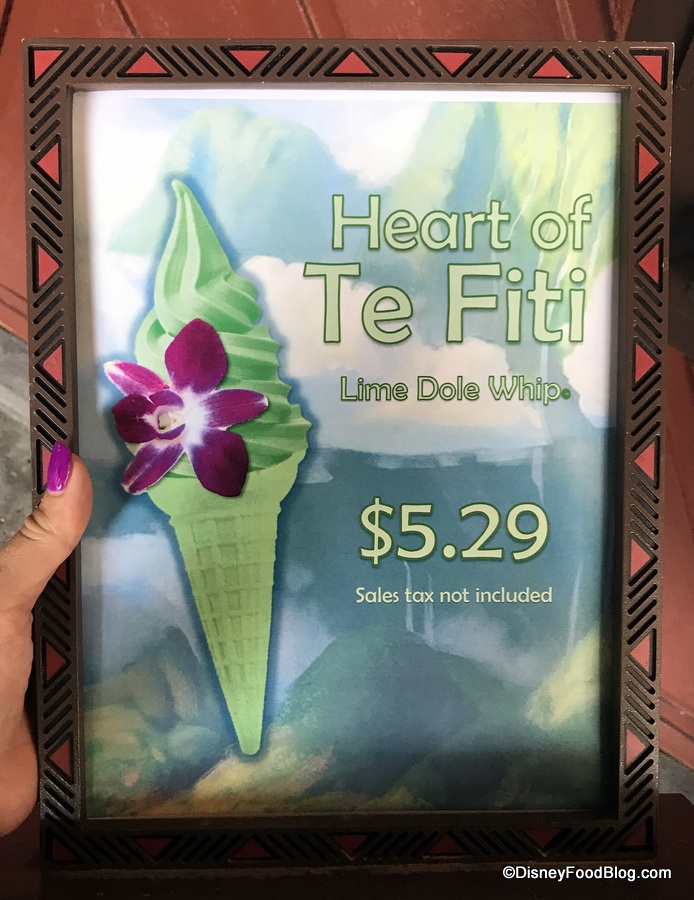 But guess what? You can currently order up a new-to-the-resort flavor! But… this flavor ISN’T on the menu OR on the sign for the Heart of Te Fiti Cone!