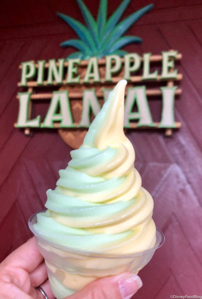 You can enjoy the classic pineapple Dole Whip, or swirl it with vanilla. And Pineapple Lanai is also currently offering the Heart of Te Fiti Lime Dole Whip Cone — read our full review here.