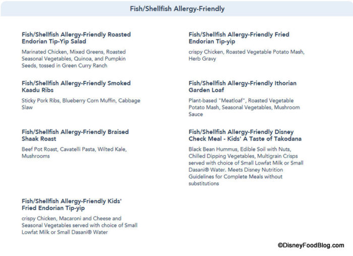And the Allergy-Friendly sections are updated to reflect those items accordingly, as again Allergy-Friendly options can now be viewed for Gluten/Wheat, Egg, Fish, Fish/Shellfish, Milk, Peanut, Tree Nut (listed separately for Dinner) and Soy allergies for Dinner.