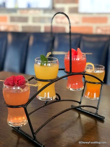 First up: the Mimosa Flight. This quartet is four little glasses of fruity happiness!