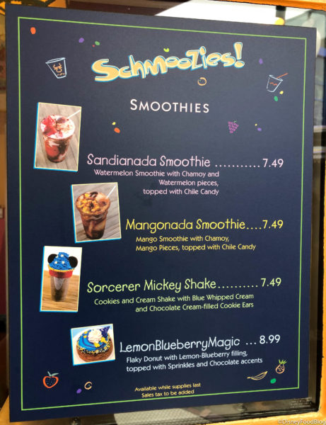 Schmoozies is now serving a Sorcerer Mickey Shake and a Lemon Blueberry Magic Donut! These new additions are the perfect way to celebrate the arrival of the Mickey’s PhilharMagic attraction in the park.