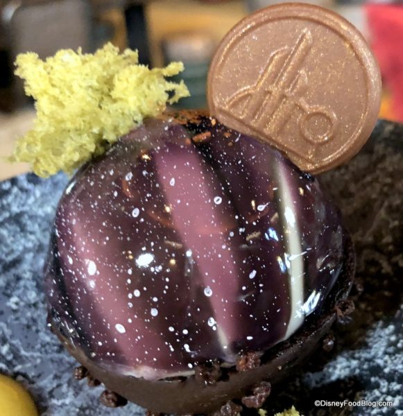 The Batuu-bon was a dense, brownie-like cake that reminded us of flourless cake. (Note, this is not listed on the online menu as Gluten/Wheat-Allergy Friendly, so check with the cast members when you order!)