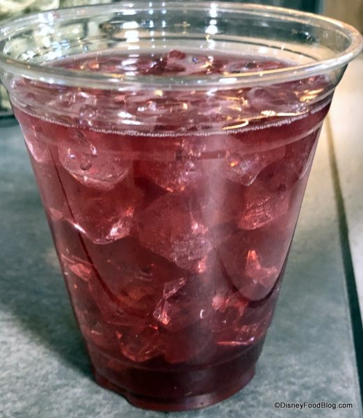 The Yobshrimp Noodle Salad was…not our favorite. This chilled dish consists of shrimp, marinated noodles, vegetables, and cilantro. The kids’ version of this dish specifies a sweet orange dressing, so we think that’s the dressing on the adult version, too. We found the overall flavor to be a bit one-note: pickled. Something about it, again, was just too sour for us. But if you enjoy pickled foods, you might like this! It’s certainly a light and creative option for theme park dining — no doubt about that — but we just weren’t fans.