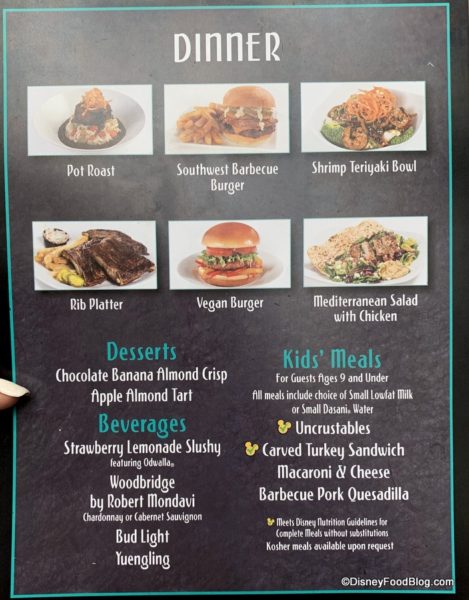 Though not required at the moment (and we’ll talk about this in greater detail later), guests can now make Advance Dining Reservations to book their dinner at ABC Commissary. However, the spot has retained its Quick Service status (much like breakfast and lunch at Be our Guest Restaurant in Magic Kingdom, which also accepts reservations for these Quick Service meals).