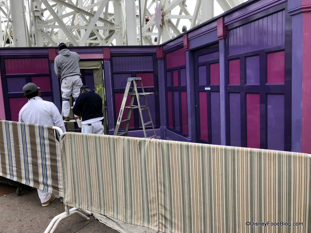 We also noticed that they’re painting the walls near the attraction PURPLE! We love a nice purple wall, don’t we?